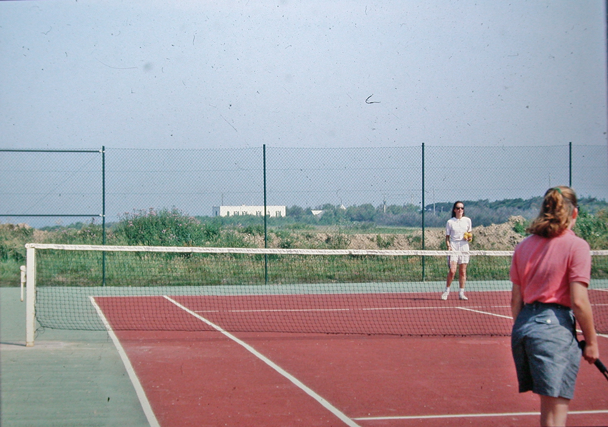 Imaginez donc à la place du practice de putting, deux courts de tennis en dur. Une localisation impeccable pour taper des balles... en plein vent 🫣 ! Concernant l'équitation, les chevaux logeaient sous le Bristrozza à l'emplacement des locaux à chariot (on voit encore l'emplacement des mangeoires sur le mur). Mais tout cela ne dure pas très longtemps, au plus deux ou trois ans...