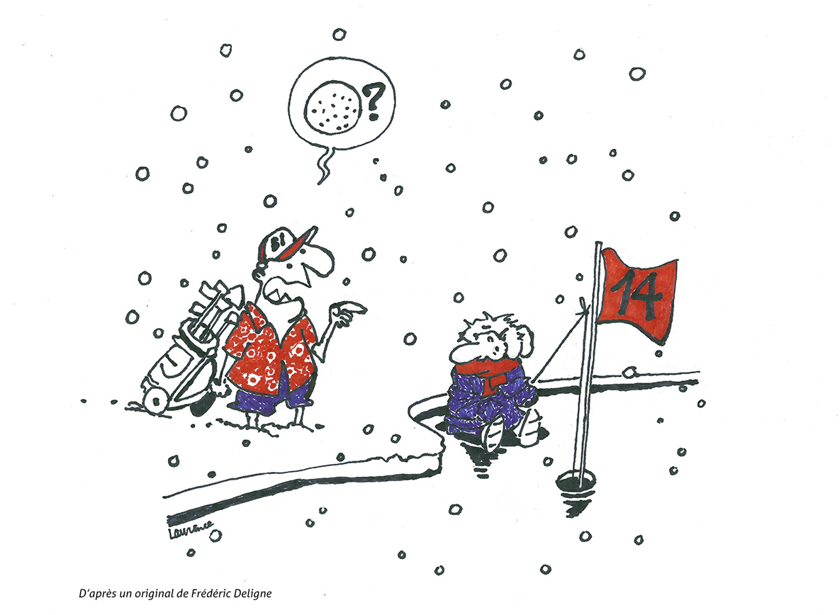 Jouer au golf lorsqu'il fait froid... un air plus dense, des balles plus dures qui roulent moins... mais aussi des parcours plus calmes, des paysages époustouflants... une expérience exquise et unique...