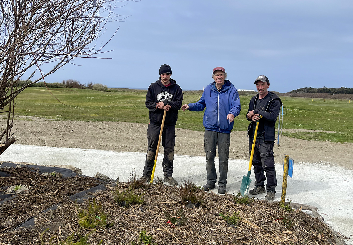 Merci, il va bien et même très bien 🤩. L'hiver a été très humide avec deux fois plus d'eau en février que la moyenne mais grâce aux coups de vent fréquents il a fini par sécher. Entre autres travaux, les greens ont été carottés et les carottes ont servi à rallonger le nouveau départ du 11 trop petit qui risquait de s'abîmer vite. Cette année les fairways du 8 et du 9 ont été sursemés pour que l'herbe prenne le pas sur le plantain qui avait tout envahi.