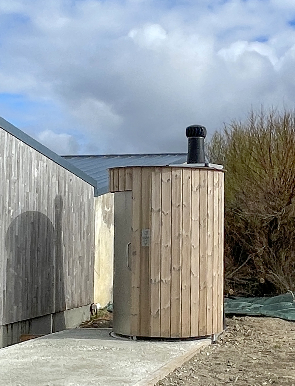 Les toilettes sèches sont installées et fonctionnelles. Ses abords ont été aménagés (là il faudra être très patient !) avec des boutures de tamaris et de l'atriplex ou pourpier de mer (on en trouve au départ du 12), des petits arbustes résistants à la sécheresse et très à l'aise en bord de mer.